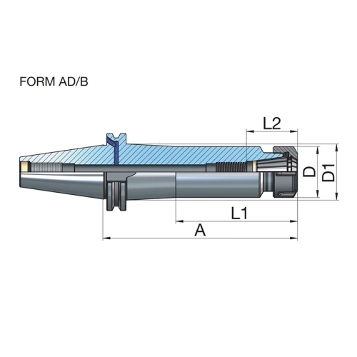 Porte-outil pour pinces DIN 6499 ER DIN ISO 7388-1 (DIN 69871) SK50 Form AD/B ER 32 (2-20) - 70 référence 503.02.20.70 marque EROGLU