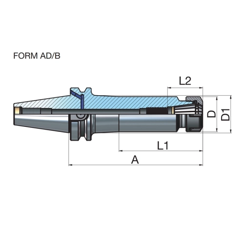 Porte-outil pour pinces DIN 6499 ER JIS B 6339 (MAS 403 BT) BT50 Form AD/B ER 32 (2-20) - 70 référence 506.02.20.70 marque EROGLU