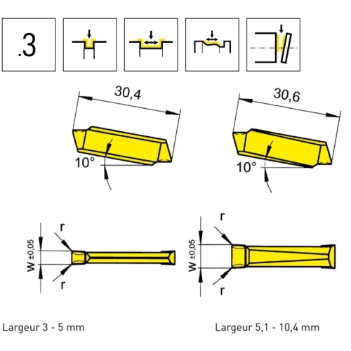 Catégorie : Plaquettes pour gorges et tronçonnage (INSGR_COR)