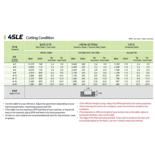 | Nombre d'arêtes de coupe effectives en bout (ZEFP) | 4 |