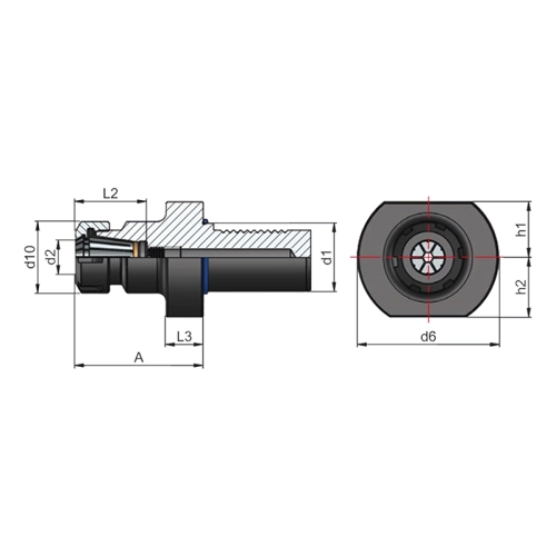 Porte-outil pour pinces DIN 6499 ER DIN ISO 10889 (DIN 69880) VDI 25 Form E4 ER 25 (2-16) - 57 référence 259.02.16.57 marque EROGLU