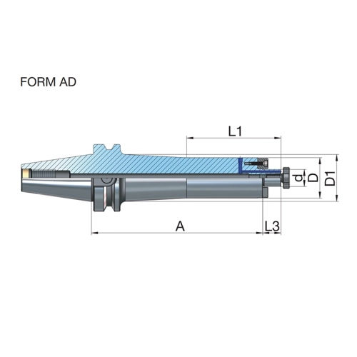 Porte-fraise entrainement par tenons DIN 6357 JIS B 6339 (MAS 403 BT) BT50 Form AD/B Ø40 - 200 référence 506.11.40.200 marque EROGLU