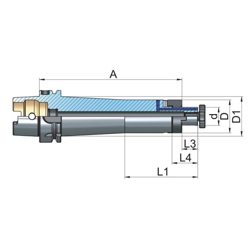 Porte-fraise combination tenon ou clavette DIN 6358 HSK ISO 12164 (DIN 69893) HSK A100 Form A Ø27 - 200 référence A100.10.27.200 marque EROGLU