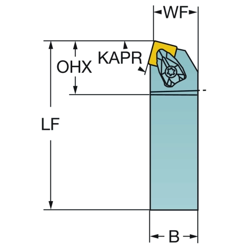 | Angle de l'arête de coupe de l'outil (KAPR) | 75 deg |