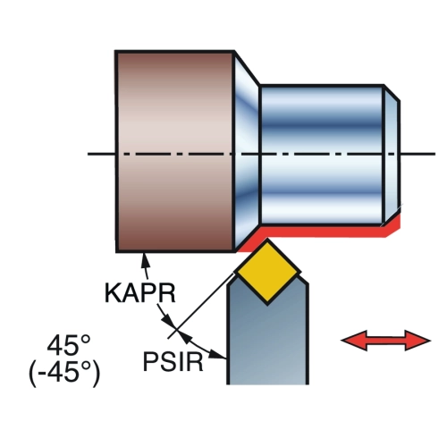 | Angle de l'arête de coupe de l'outil (KAPR2) | 45 deg |