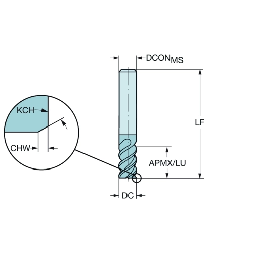 Fraise carbure monobloc en bout CoroMill® Plura pour la finition R215.3610050AC22L1620 marque SANDVIK COROMANT