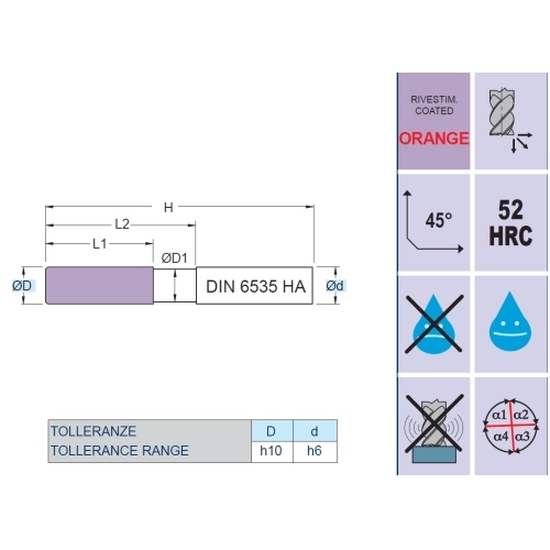 | Angle d'hélice de goujure (FHA) | 35/38 deg |