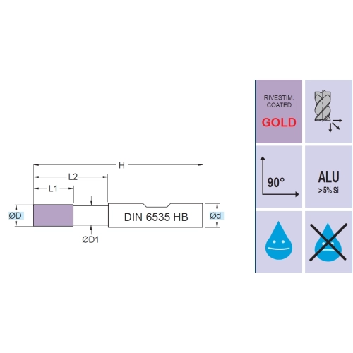 | Angle d'hélice de goujure (FHA) | 40 deg |