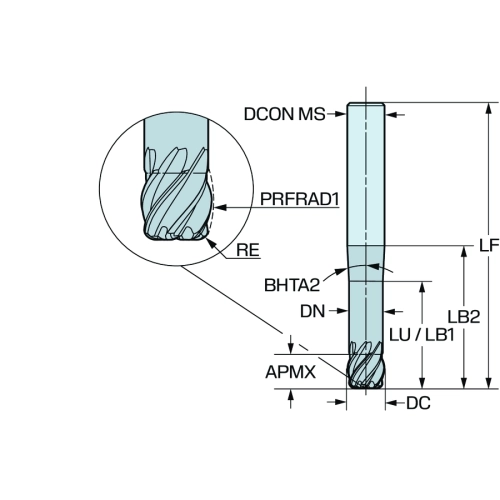 Fraise en bout CoroMill® Plura en carbure monobloc. 2A1460800A016RCMF R2AH