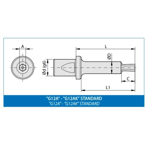 Broche forme HEXAGONALE gamme BRG12A référence G12AK-E-10INOX PLUS marque BRIGHETTI